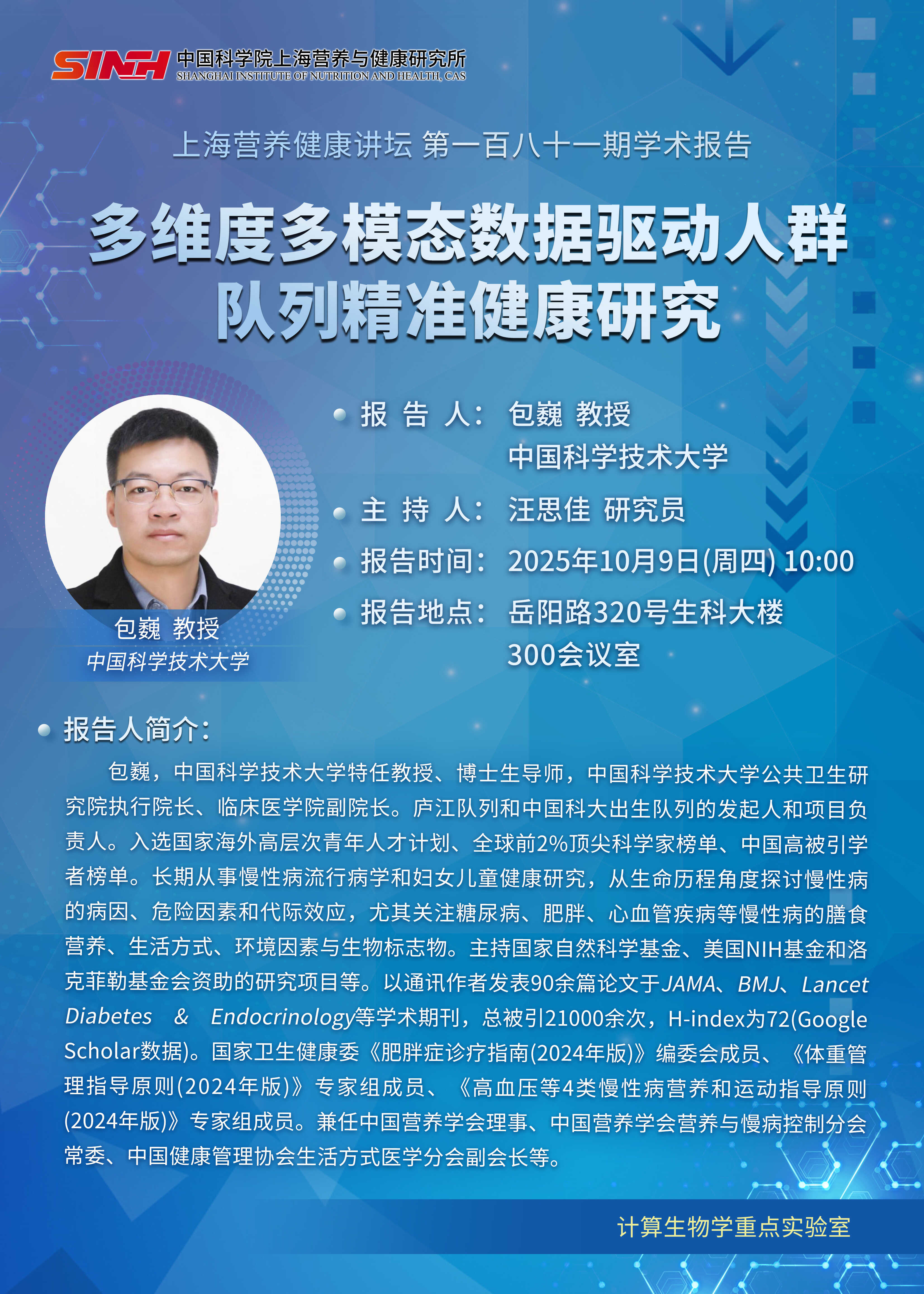 10月9日|多維度多模態(tài)數(shù)據(jù)驅(qū)動人群隊(duì)列精準(zhǔn)健康研究-上海營養(yǎng)健康講壇