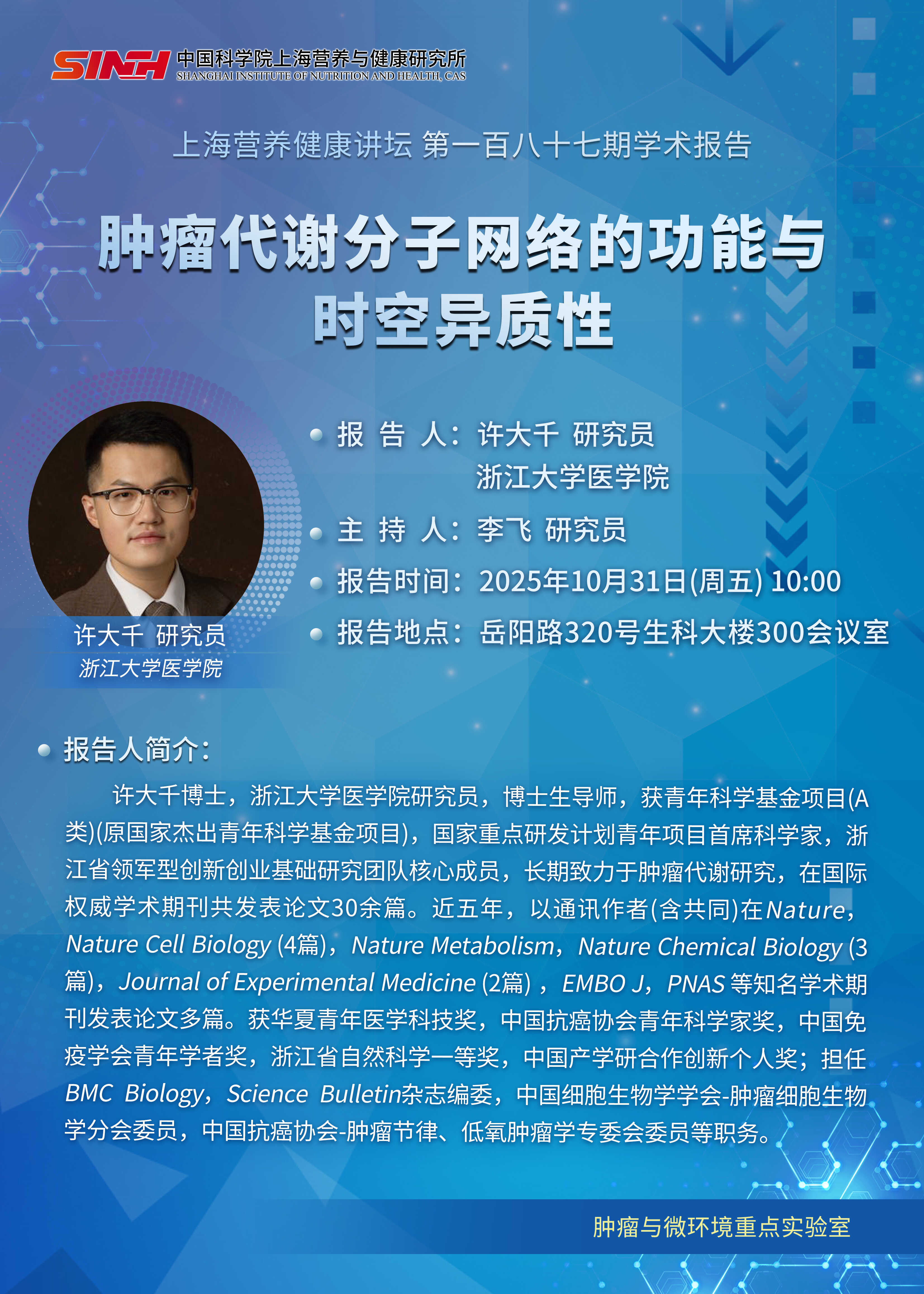 10月31日|腫瘤代謝分子網(wǎng)絡(luò)的功能與時(shí)空異質(zhì)性-上海營(yíng)養(yǎng)健康講壇