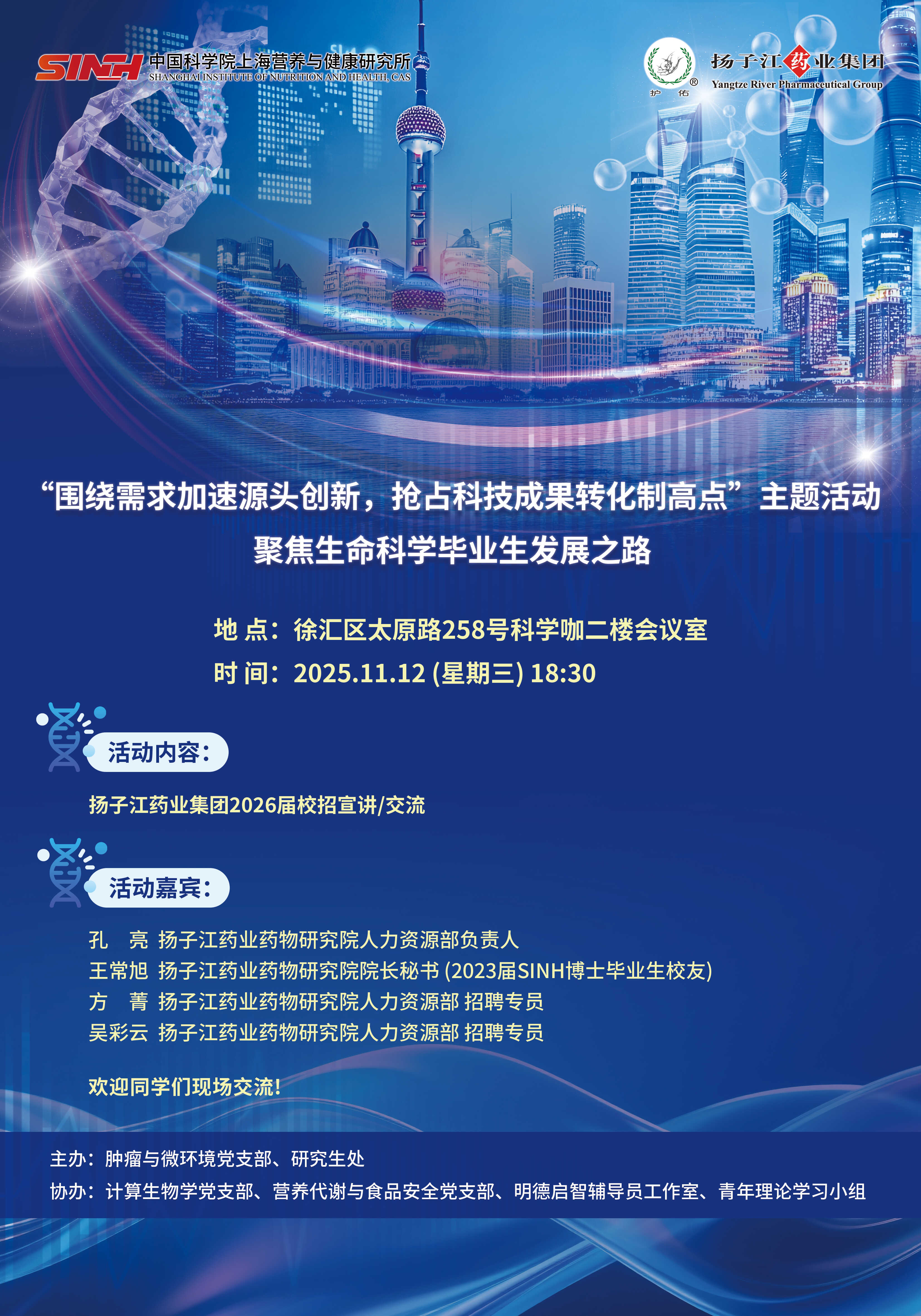 11月12日|聚焦生命科學(xué)畢業(yè)生發(fā)展之路-揚(yáng)子江藥業(yè)集團(tuán)2026屆校招宣講交流