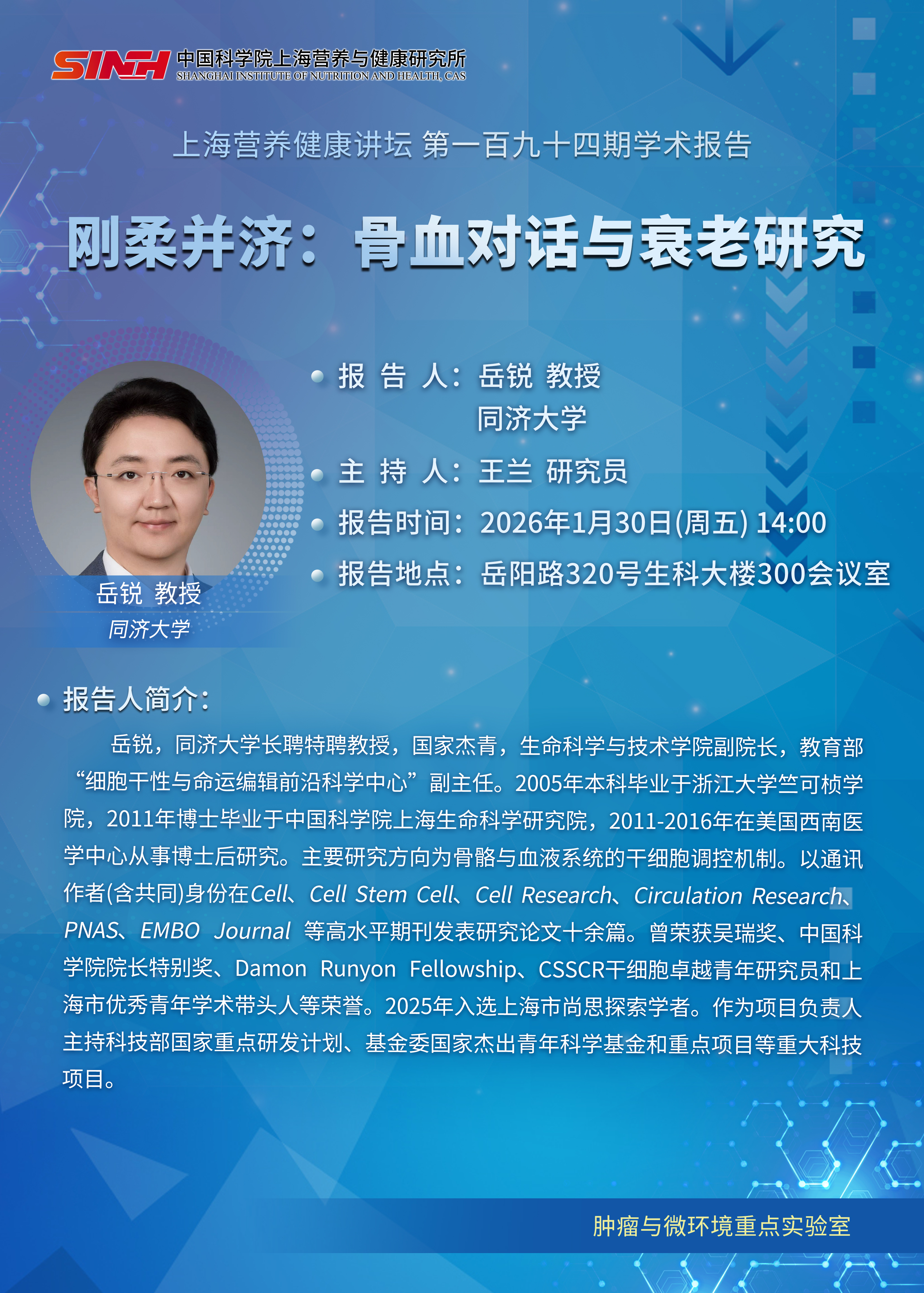 1月30日|剛?cè)岵?jì):骨血對話與衰老研究-上海營養(yǎng)健康講壇