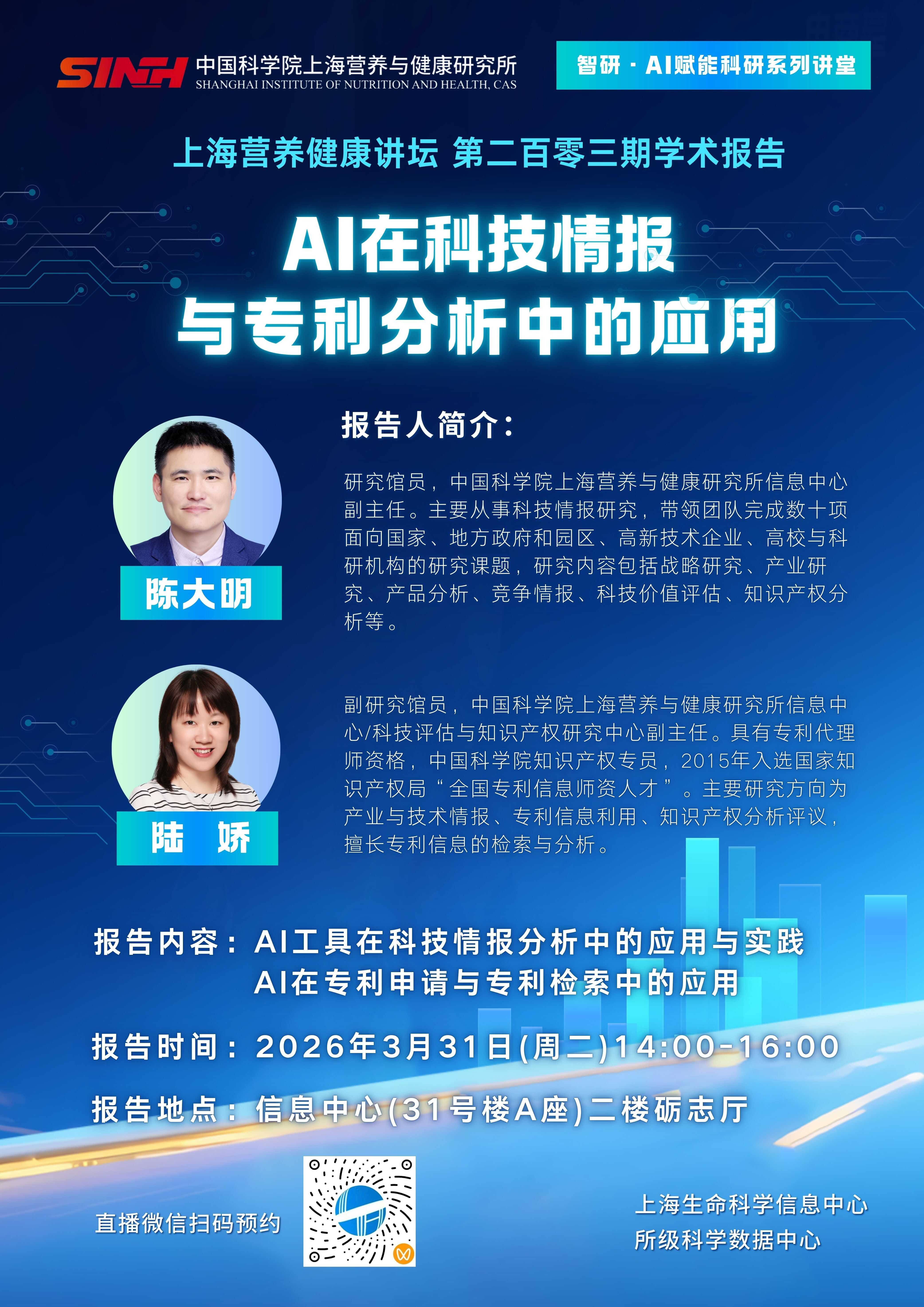 3月31日|AI在科技情報(bào)與專利分析中的應(yīng)用-上海營(yíng)養(yǎng)健康講壇