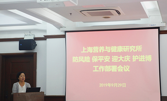 為保障國(guó)慶70周年慶典及第二屆“進(jìn)博會(huì)”期間各項(xiàng)工作順利開(kāi)展,落實(shí)國(guó)家、中科院、上海市等各級(jí)單位相關(guān)指示要求,9月29日下午,中國(guó)科學(xué)院上海營(yíng)養(yǎng)與健康研究所召開(kāi)“防風(fēng)險(xiǎn) 保平安 迎大慶 護(hù)進(jìn)博”有關(guān)工作部署會(huì)議。黨委書記蔡澎、各研究組代表、行政管理部門及支撐平臺(tái)負(fù)責(zé)人等60余人參加了會(huì)議,會(huì)議由紀(jì)委書記孔巍主持。