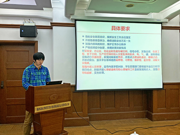 1月13日下午,上海營養(yǎng)與健康研究所召開2020年第一次安全工作會議。各管理部門、研究組、平臺等安全員共50余人參加了會議。會議由綜合管理處處長裴旸主持。