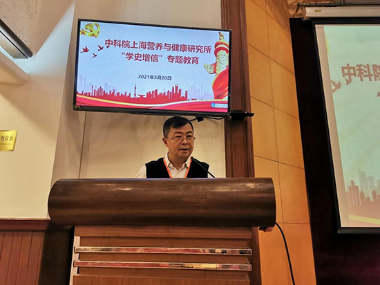 5月20日,中國科學(xué)院上海營養(yǎng)與健康研究所召開“學(xué)史增信”專題黨員集中學(xué)習(xí)教育。研究所領(lǐng)導(dǎo)班子、“兩委”委員、所務(wù)會成員、各黨支部(總支)書記、科研骨干、職能部門負(fù)責(zé)人、黨團(tuán)員青年等100余人參加學(xué)習(xí)。會議由黨委書記、副所長蔡澎主持。