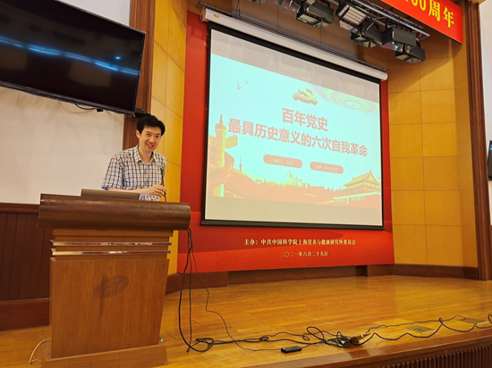 隨后,黨支部書記應(yīng)浩研究員作了題為《百年黨史——最具歷史意義的六次自我革命》的黨課,分別從“打鐵必須自身硬是馬克思主義政黨的內(nèi)生特質(zhì)”、“百年黨史,最具歷史意義的六次自我革命”、“刀刃向內(nèi)的自我革命永遠在路上”等三個方面做了領(lǐng)學(xué)。通過對歷史事件的分析,他闡明了自我革命是共產(chǎn)主義事業(yè)的生命力所在,是共產(chǎn)黨人與生俱來的優(yōu)良政治品質(zhì),同時強調(diào)中國共產(chǎn)黨之所以能夠歷經(jīng)滄桑,仍然屹立于世界政黨之林,與其具有的鮮明自我革命精神是密不可分的。