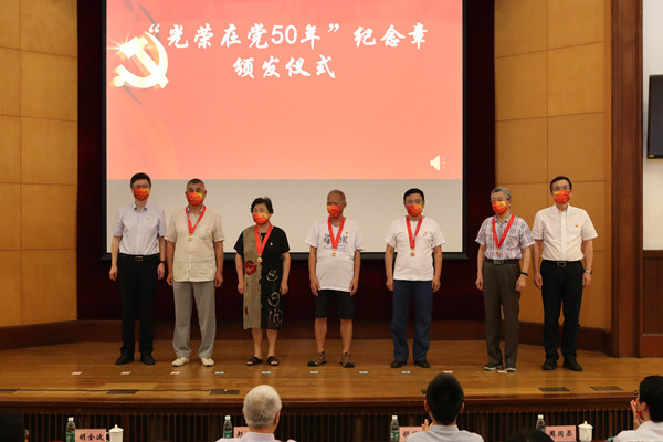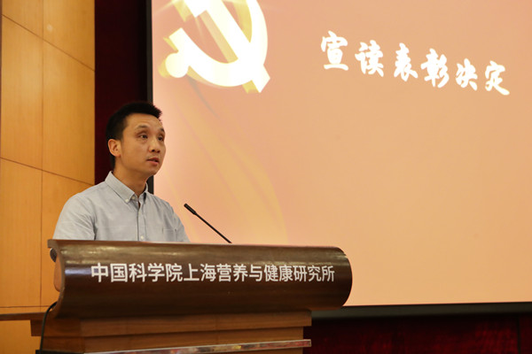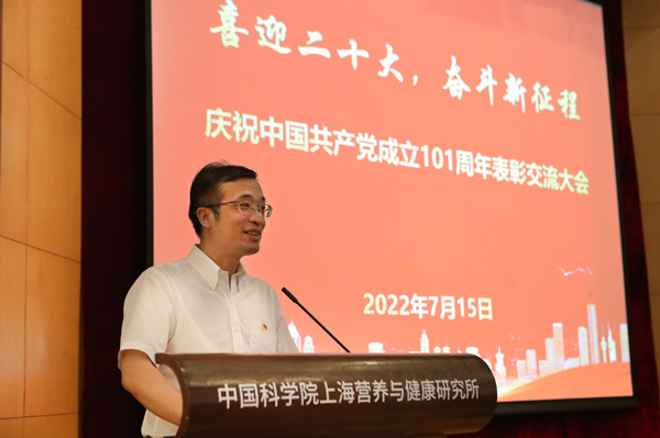 會(huì)上,胡國(guó)宏宣讀了對(duì)研究所本輪疫情防控工作中表現(xiàn)突出的優(yōu)秀個(gè)人和先進(jìn)集體的表彰決定。裴旸、陳瑜潔、吳小霞、譚吉良等獲獎(jiǎng)代表分別圍繞保障園區(qū)正??蒲兄刃?、支援社區(qū)疫情防控、科技抗疫充實(shí)檢測(cè)力量等暢談了各自崗位上的抗疫經(jīng)歷,從不同角度展示了營(yíng)養(yǎng)與健康所人同心抗疫、敢于擔(dān)當(dāng)、共克時(shí)艱的良好精神風(fēng)貌。胡金波、瞿榮輝等向老同志代表頒發(fā)了“光榮在黨50年”紀(jì)念章,全場(chǎng)用熱烈的掌聲向老黨員們致以崇高敬意。