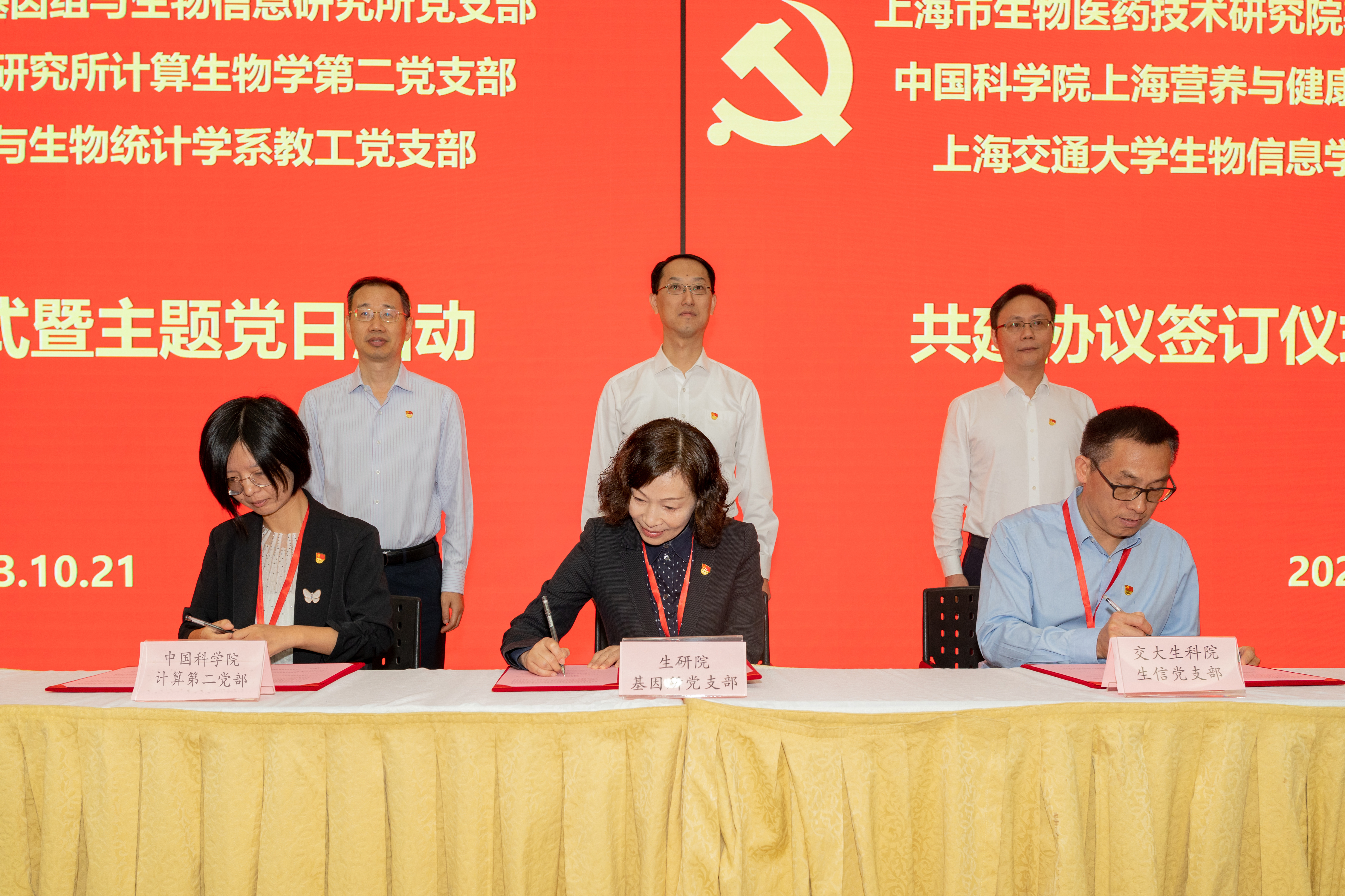 上海生研院基因組與生物信息所黨支部書記謝鷺、營(yíng)養(yǎng)與健康所計(jì)算生物學(xué)第二黨支部書記李虹、上海交通大學(xué)生命科學(xué)技術(shù)學(xué)院生物信息學(xué)與生物統(tǒng)計(jì)學(xué)系教工黨支部書記陳海峰分別在上級(jí)黨委書記劉海峰、曹永、顧建平的見(jiàn)證下簽署三個(gè)支部聯(lián)合共建協(xié)議。三方擬通過(guò)開(kāi)展黨支部結(jié)對(duì)共建活動(dòng),在抓改革、促創(chuàng)新、求發(fā)展方面充分發(fā)揮黨建引領(lǐng)和保障的作用,促進(jìn)各方不斷出成果、出人才、出思想,努力形成互帶互動(dòng)、優(yōu)勢(shì)互補(bǔ)、資源共享,共同提高的基層黨建工作新格局。三方以黨建為引領(lǐng)、支部共建為紐帶,就共同關(guān)心的科研領(lǐng)域需求積極開(kāi)展學(xué)科交叉論壇等交流活動(dòng)。