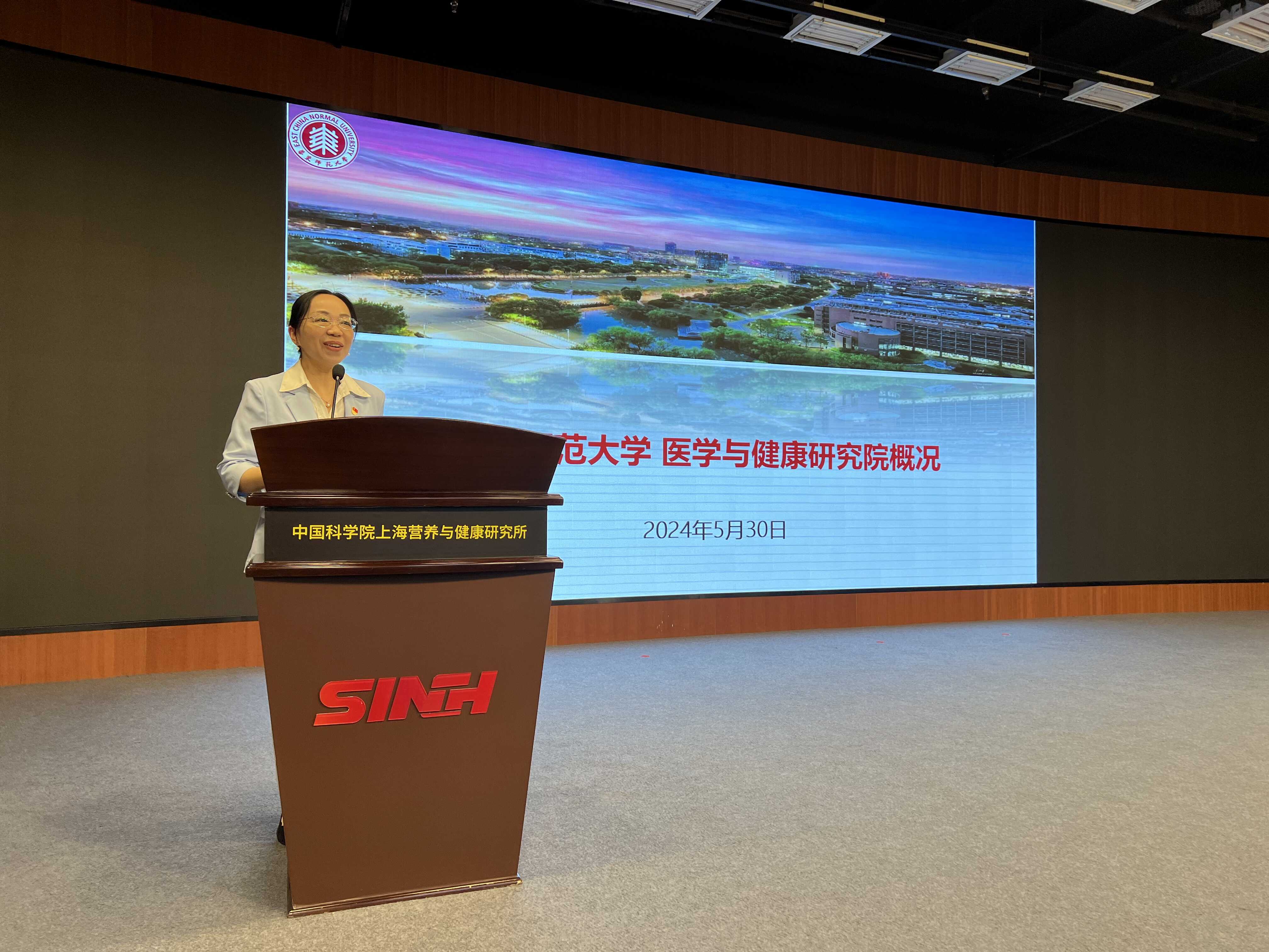 在科研交流座談中,雙方支部代表分別介紹了各自的基本情況與支部建設(shè)進(jìn)展。徐敏華詳細(xì)介紹了華東師范大學(xué)的發(fā)展歷程、學(xué)科建設(shè)、醫(yī)學(xué)與健康研究院總體情況與發(fā)展目標(biāo);應(yīng)浩對(duì)營(yíng)養(yǎng)與健康所概況及科技制高點(diǎn)的行動(dòng)目標(biāo)與規(guī)劃作了全面闡述。此外,華東師范大學(xué)藥學(xué)院副教授朱書(shū)雷也分享了藥學(xué)院在科學(xué)研究與人才培養(yǎng)方面的基本情況。