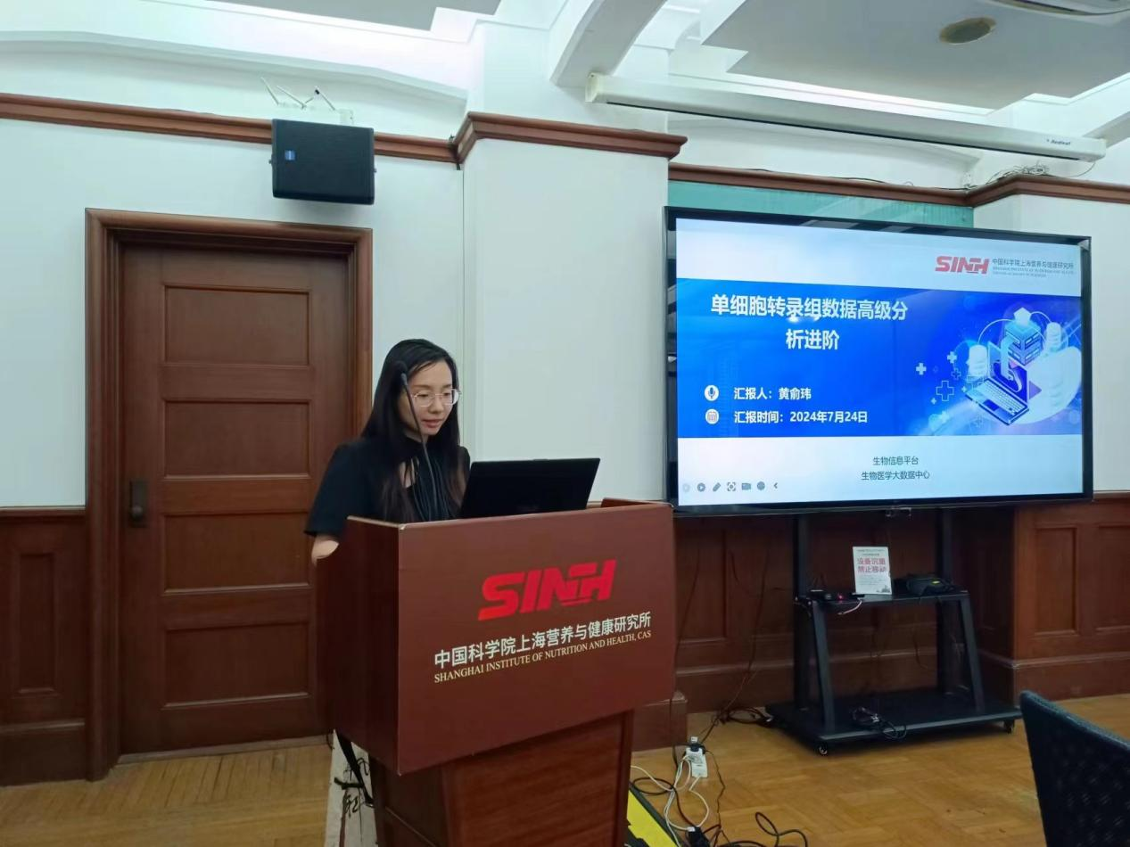 7月24日下午,中國(guó)科學(xué)院上海營(yíng)養(yǎng)與健康研究所所級(jí)科學(xué)數(shù)據(jù)中心舉辦了“單細(xì)胞轉(zhuǎn)錄組數(shù)據(jù)高級(jí)分析進(jìn)階”培訓(xùn),旨在幫助科研人員了解和掌握相關(guān)技術(shù)和工具,以提升自身生物信息分析能力。本次培訓(xùn)由中心資深工程師黃俞瑋擔(dān)任主講人,其研究方向?yàn)樯镄畔W(xué)大數(shù)據(jù)分析和流程搭建,目前主要負(fù)責(zé)單細(xì)胞及空間轉(zhuǎn)錄組方向的分析工作。