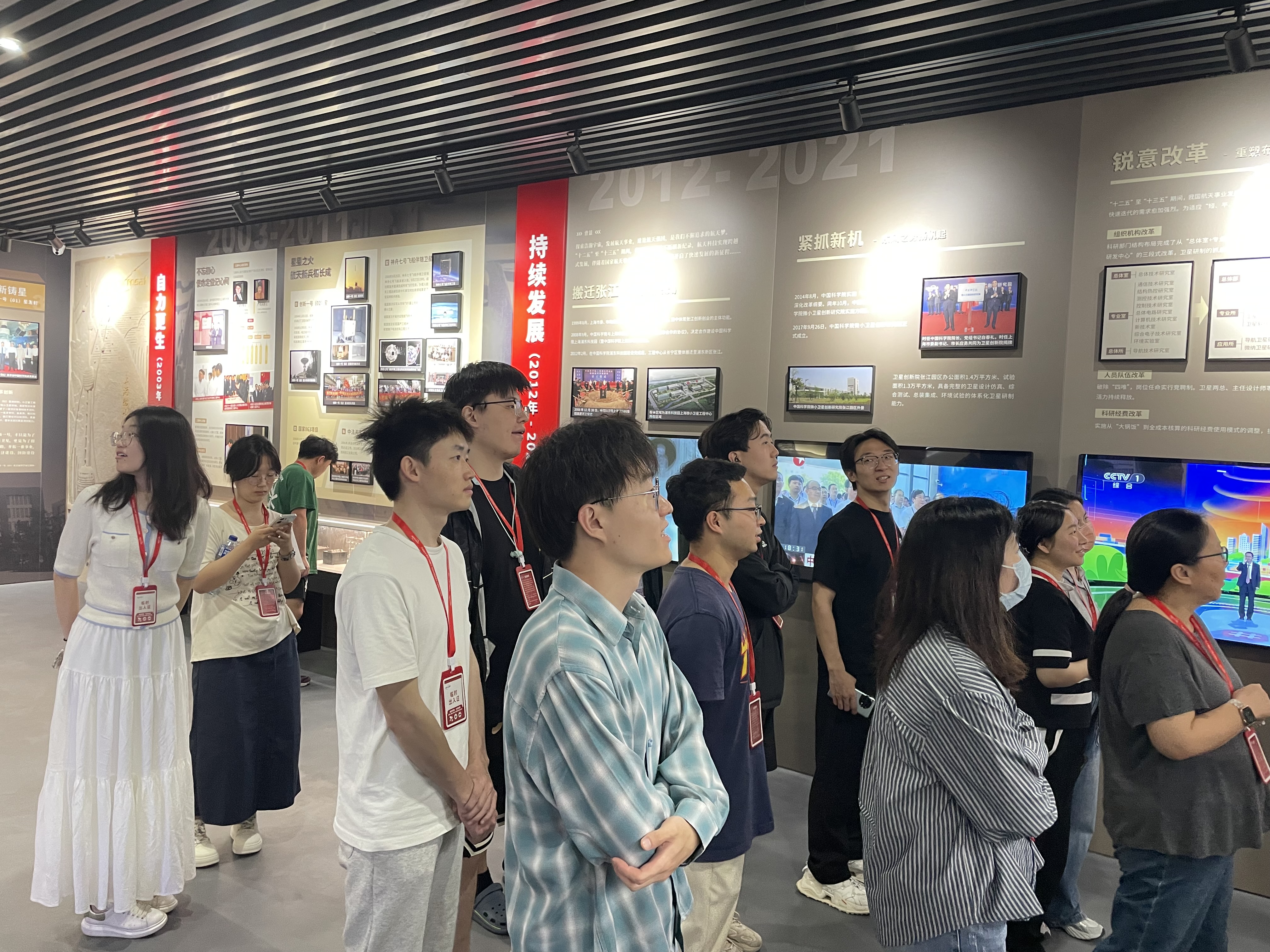 師生們首先參觀了衛(wèi)星創(chuàng)新院航天衛(wèi)星科普教育基地(院史館),通過圖文展板、衛(wèi)星模型和發(fā)射模擬視頻等形式,系統(tǒng)地了解了研究院20年來的發(fā)展歷程及其在北斗導(dǎo)航、量子通信、暗物質(zhì)探測等領(lǐng)域取得的代表性科研成果。隨后,師生們進(jìn)入衛(wèi)星研發(fā)總裝廠房,近距離接觸到包括“天宮二號”伴星、“悟空號”等衛(wèi)星模型,深刻體會(huì)到航天工作者們身上的“三無精神”(無名英雄、無私奉獻(xiàn)、無上光榮)與家國情懷。通過此次主題教育活動(dòng),師生們不僅收獲了豐富的航天知識,更體會(huì)到了科學(xué)家們“特別能吃苦、特別能戰(zhàn)斗、特別能攻關(guān)、特別能奉獻(xiàn)”的精神。