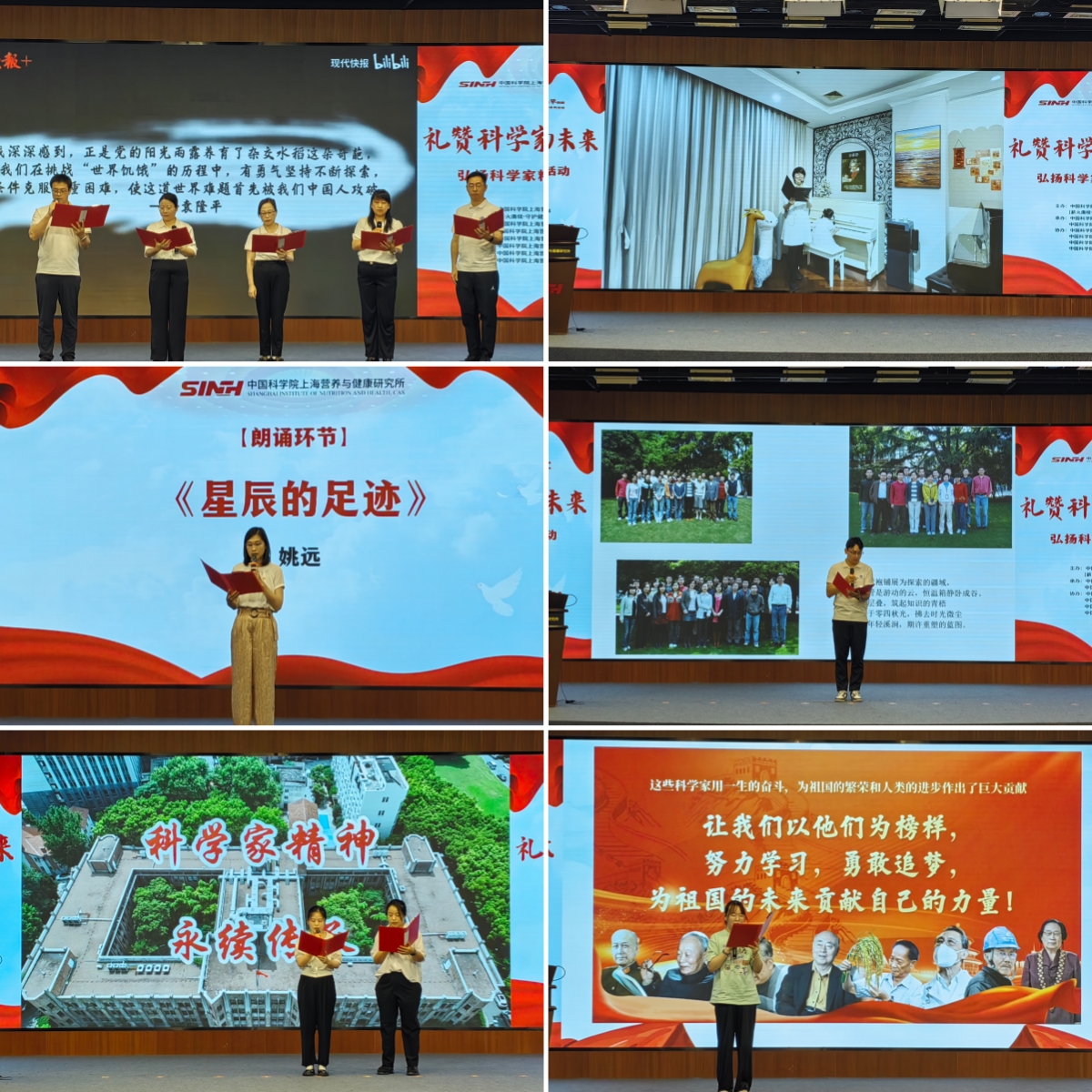 為致敬科學(xué)家,激勵科技工作者們堅定科技報國信念、勇攀科學(xué)高峰,6月27日下午,中國科學(xué)院上海營養(yǎng)與健康研究所舉行弘揚(yáng)科學(xué)家精神專題朗誦活動。信息中心副主任、黨總支副書記沈東婧主持活動。