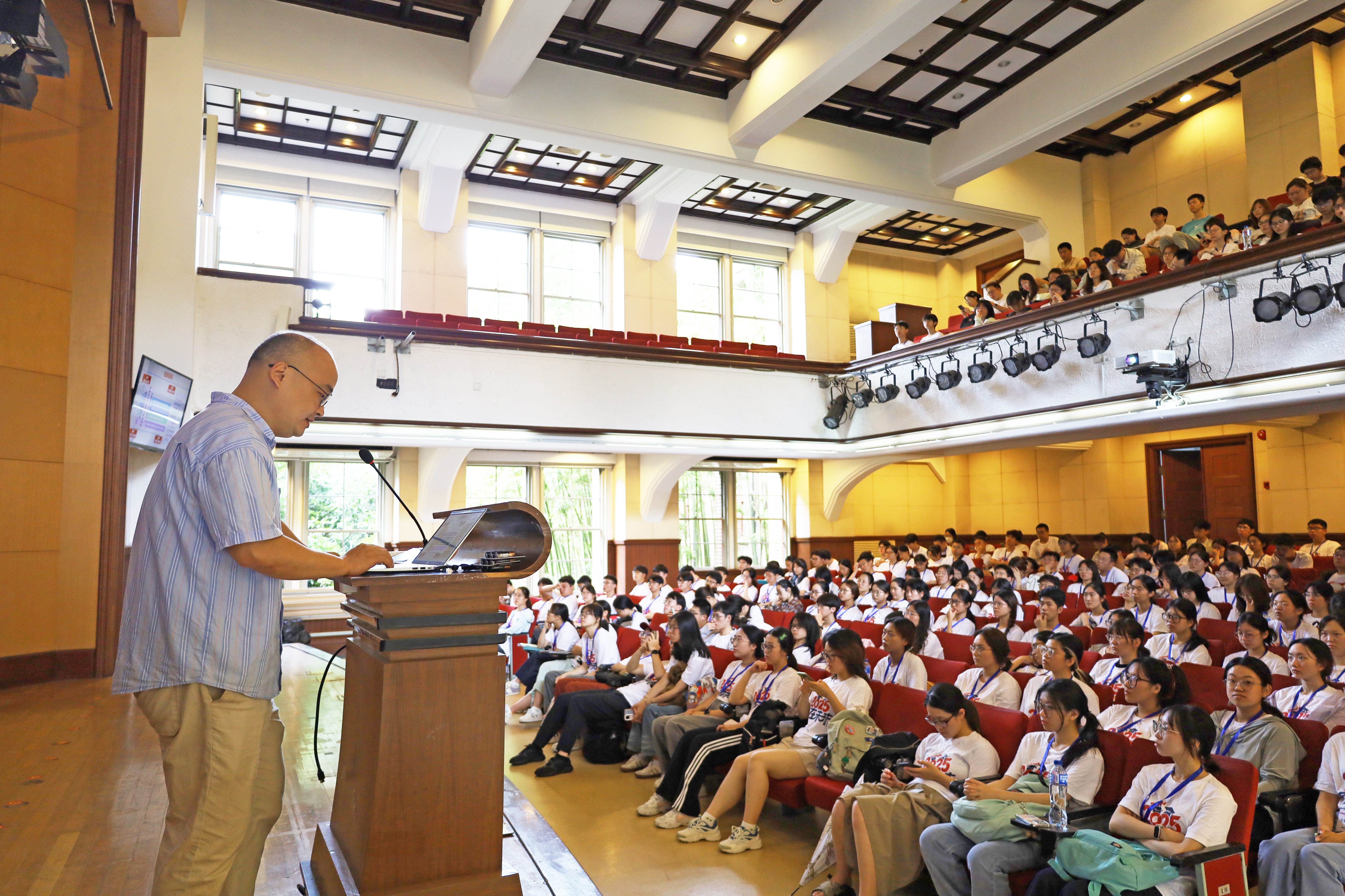 7月8日上午,開營儀式在生科大樓報告廳舉行,營養(yǎng)與健康所所務(wù)委員、研究生教育協(xié)管領(lǐng)導(dǎo)邵振研究員出席。邵振對來自全國各地高校的學(xué)子們表示歡迎,隨后詳細(xì)介紹了研究所的發(fā)展歷程、各學(xué)科領(lǐng)域研究現(xiàn)狀及研究所重大科研成果,希望營員們通過夏令營深入了解生命科學(xué)技術(shù)的應(yīng)用前景,充分感受研究所濃厚的學(xué)術(shù)氛圍,為今后學(xué)習(xí)深造激發(fā)創(chuàng)新思維、培育科學(xué)素養(yǎng)。開營儀式由研究生處處長薄祥慧主持。