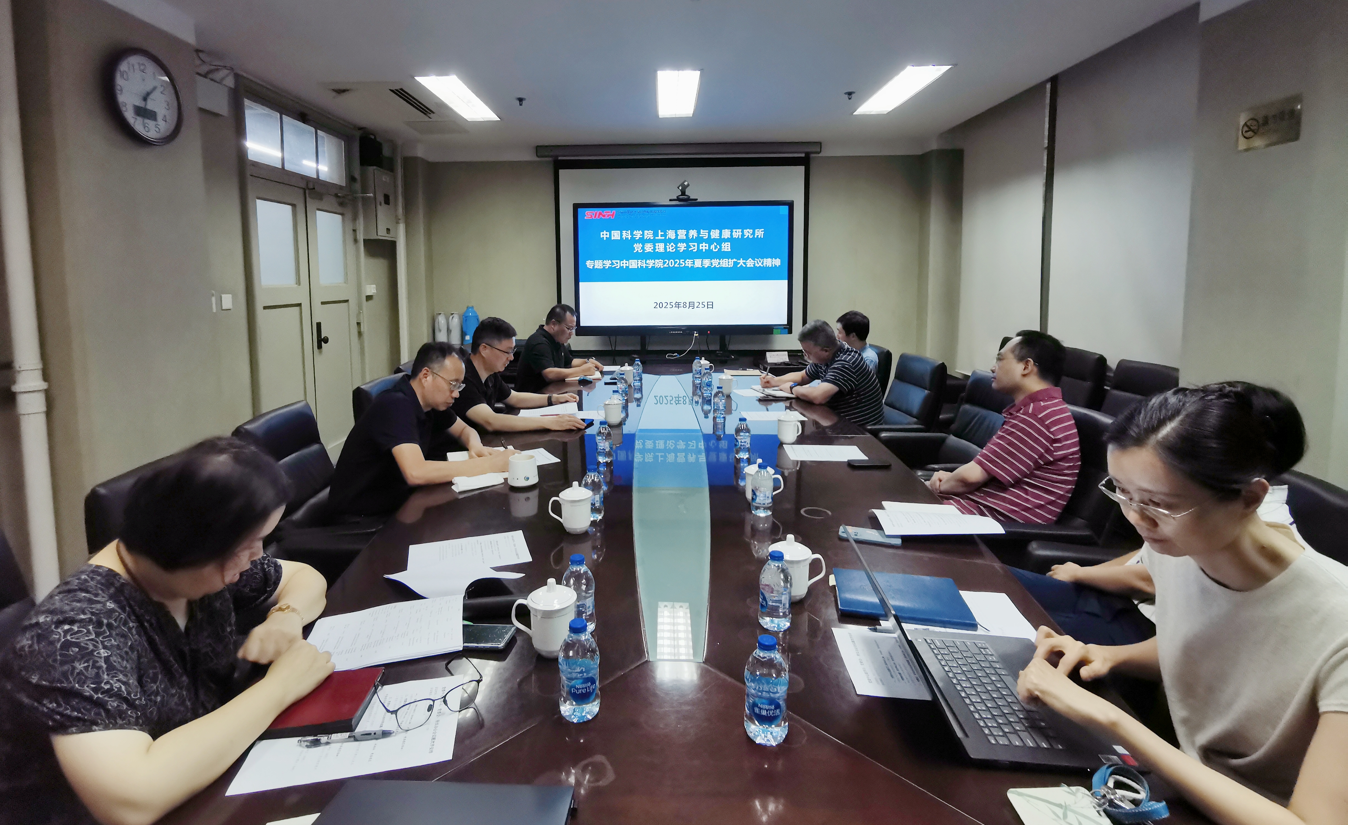 8月25日,中國科學(xué)院上海營養(yǎng)與健康研究所召開黨委理論中心組學(xué)習(xí)會(huì),認(rèn)真學(xué)習(xí)研討中國科學(xué)院黨組2025年夏季擴(kuò)大會(huì)議精神。研究所領(lǐng)導(dǎo)班子成員、黨委委員、所務(wù)委員以及部分職能部門負(fù)責(zé)人參加學(xué)習(xí),黨委書記瞿榮輝主持會(huì)議。