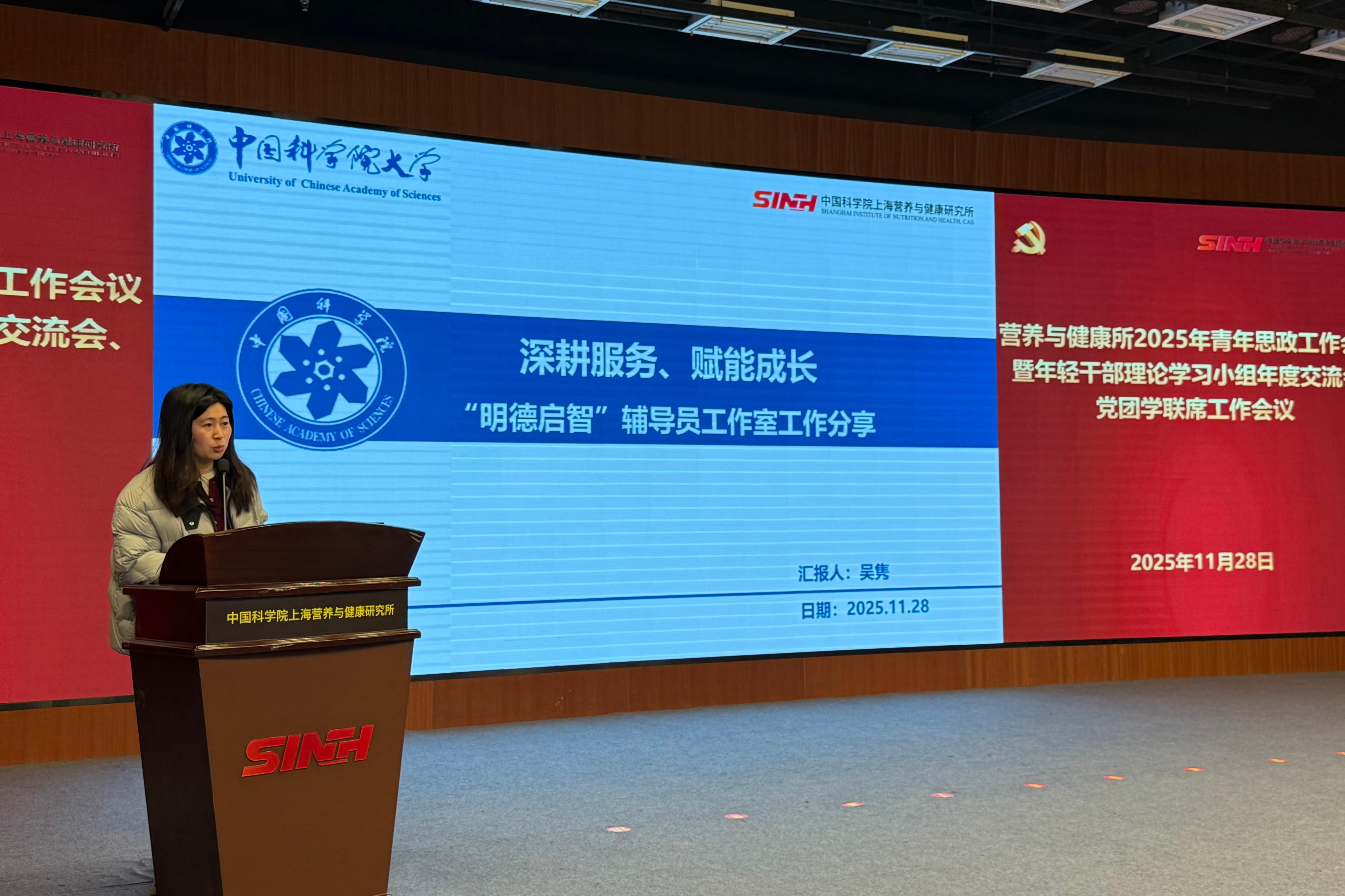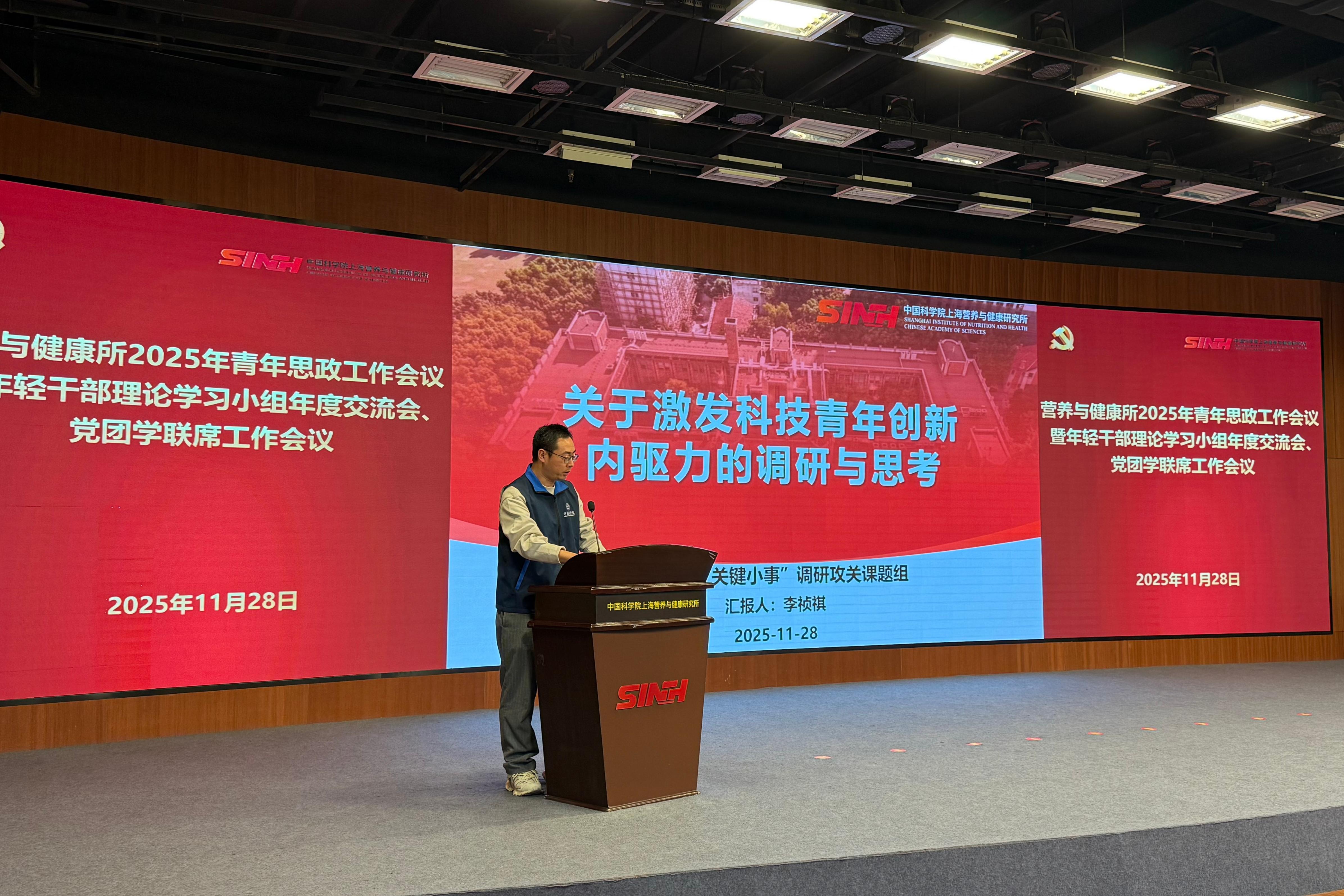 11月28日下午,為進一步推動青年干部和科研人員在研究所高質(zhì)量發(fā)展新征程中展現(xiàn)新?lián)?、實現(xiàn)新作為,中國科學(xué)院上海營養(yǎng)與健康研究所召開2025年青年思政工作會議暨黨團學(xué)聯(lián)席工作會議。營養(yǎng)與健康所黨委書記瞿榮輝、紀委書記曹永、相關(guān)職能部門和黨組織負責人、輔導(dǎo)員代表、各支部青年委員、青年理論學(xué)習(xí)小組組長及研究生代表近50人參會。