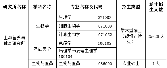 一、上海營養(yǎng)與健康研究所2021級統(tǒng)考生招生情況: